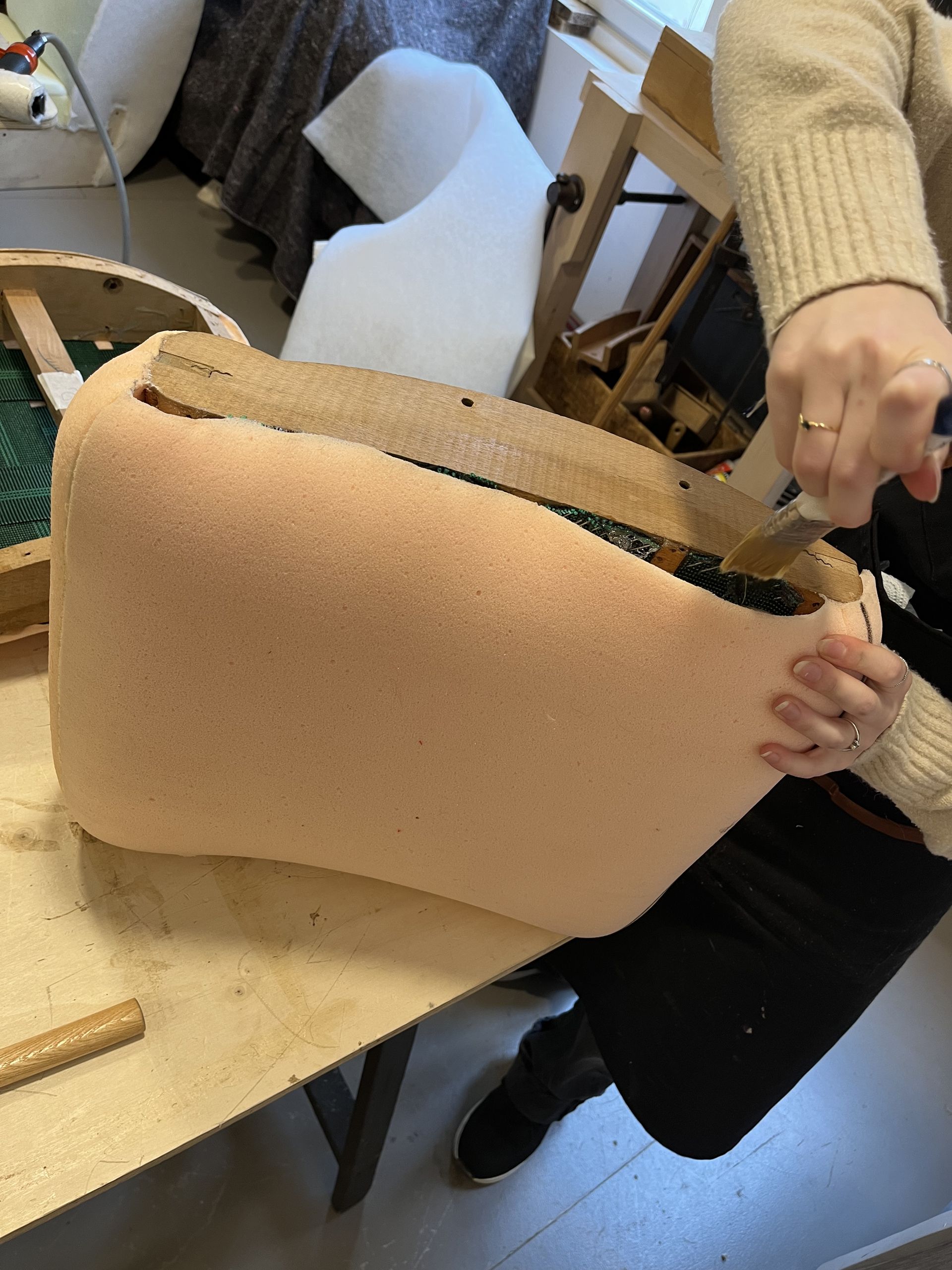 Cela inclut parfois le travail du bois (réparation, restauration des pieds, structure, etc.).